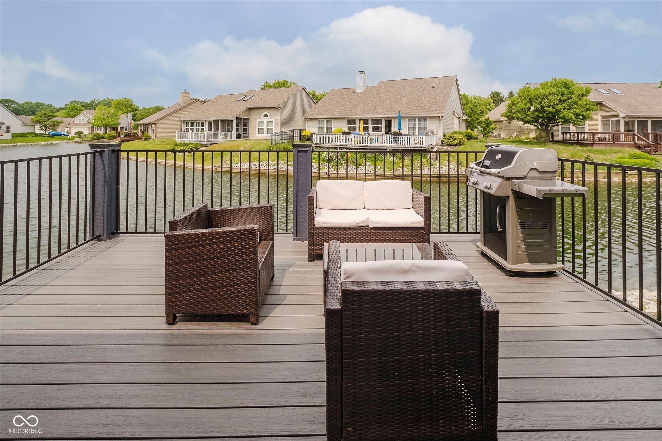 Beautiful setting on the pond in one of the Lawrence township most neighborhoods, Chesapeake shows like a model home! This 3 bedroom, 2 full bath home offers, open concept layout. Eat-in kitchen has granite counter, updated cabinets (Amish) and breakfast bar & all appliances. Great room has updated fireplace. Retreat to your primary suite w/lots of natural light, view of the pond, laminate hardwoods and updated bath w/2 vanities, tiled walk in shower, walk-in custom closet. 2nd & 3rd bedroom have walk-in custom closets w/3rd bedroom being used as an office. Updated guest bathroom features new tile walls, new laminate hardwoods and newer vanity. Gorgeous views of the pond from kitchen, great room and primary bedroom. Screened room off the kitchen walks out to a NEW deck overlooking the pond. New HVAC 2019, all new windows in 2020, all new laminate hardwoods in 2020, 2 new garage doors 2022 and new deck off back porch 2023.